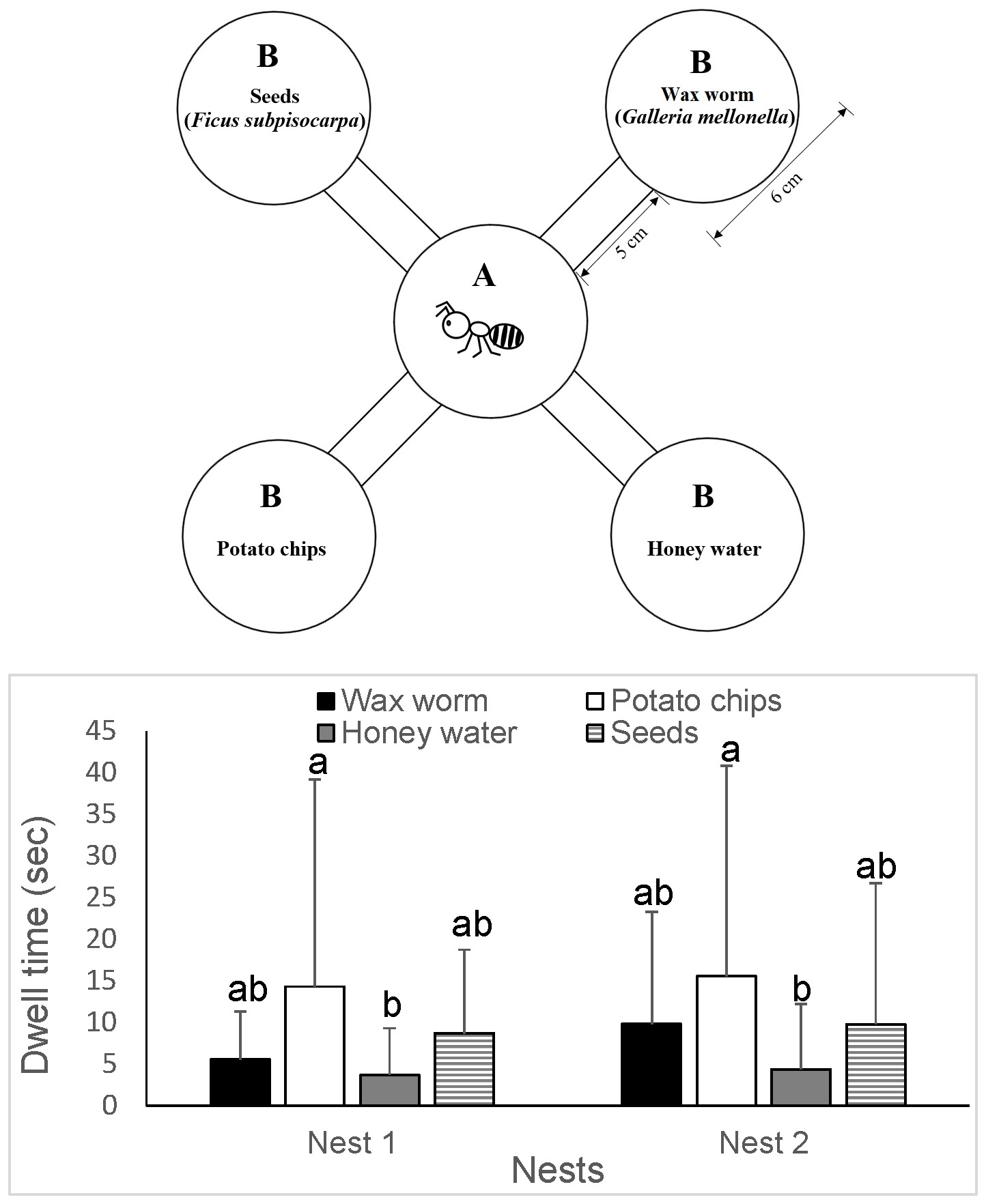 This study examined individual and group exploration behaviors of Solenopsis geminata workers. There were significant effects of nest and food source on dwell time in the individual exploration assay, with workers spending more time on potato chips and less time on honey water. Comparing the average time spent exploring food items between groups of workers with and without experience, no significant difference was found in Nest 1, but a significant difference appeared in Nest 2. Group workers located food faster, although no significant difference was observed between individual exploration assays and the same workers in group exploration assays. Behavioral variation among workers at both individual and group levels is essential for rapid responses to environmental changes in their invaded regions. The differences in exploratory behavior among individual workers and groups, both within and between colonies, could affect foraging efficiency and resource utilization.