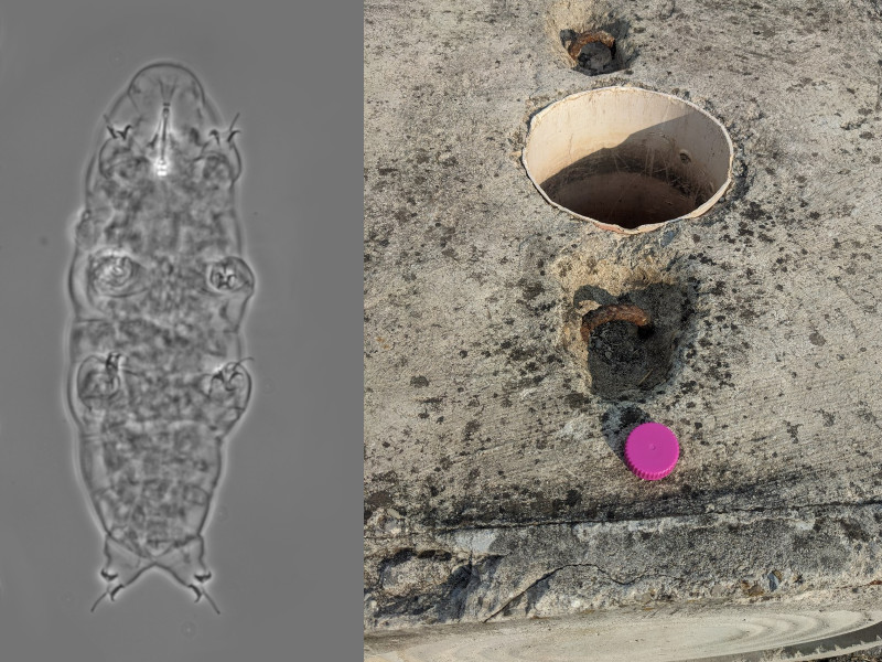 Tardigrades are microscopic animals that are commonly found in mosses, lichens and leaf litter worldwide. While most of the research focus on tardigrades from pristine natural habitats, their ability to survive almost complete desiccation and other extreme stress (like UV radiations) allows them to thrive also in unexpected urban areas. Tardigrades have been collected from mosses and lichens growing in cities worldwide, however in this study they come up from an unexpected habitat. Abundant tardigrades population have been found in the little amount of sediment that collects in cavities on concrete blocks. Those tardigrades resemble those found in alpine rock pools, i.e., small holes on bare rock that accumulate sediments, allowing to speculate a functional similarity between these natural habitats and less natural holes on concrete blocks. This new discovery highlight how cities can be habitats for unexpected animals and in some cases can help them survive and thrive.