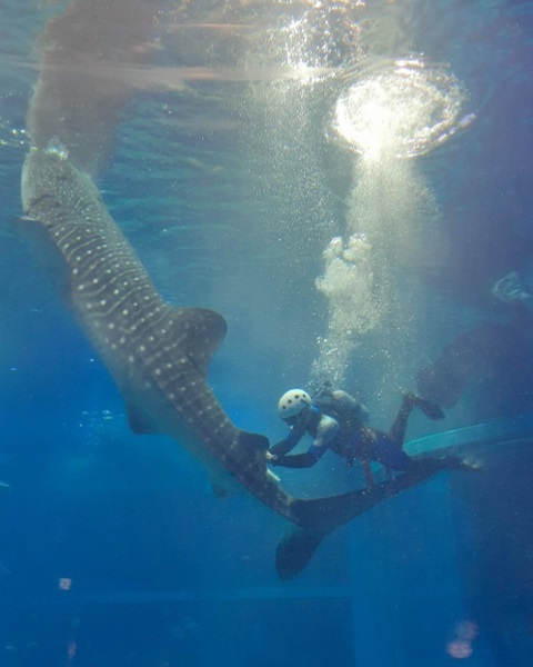 Blood sampling from a trained whale shark (Rhincodon typus).