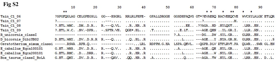 Tapirus indicus class I exon 2 clones, rhinoceros (